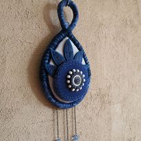 - boucles d’oreilles et décorations murales en toile de coton brut teintes avec des plantes locales